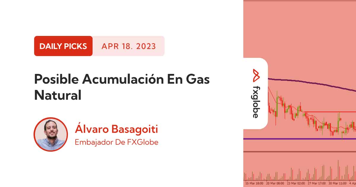 Hoy vamos a analizar un activo que está dibujando una estructura muy interesante. El gas natural viene de unos meses con caídas muy fuertes, hasta que en las últimas semanas viene lateralizando sobre la zona de soporte que esta marca en el gráfico con el rectángulo azul extendido.